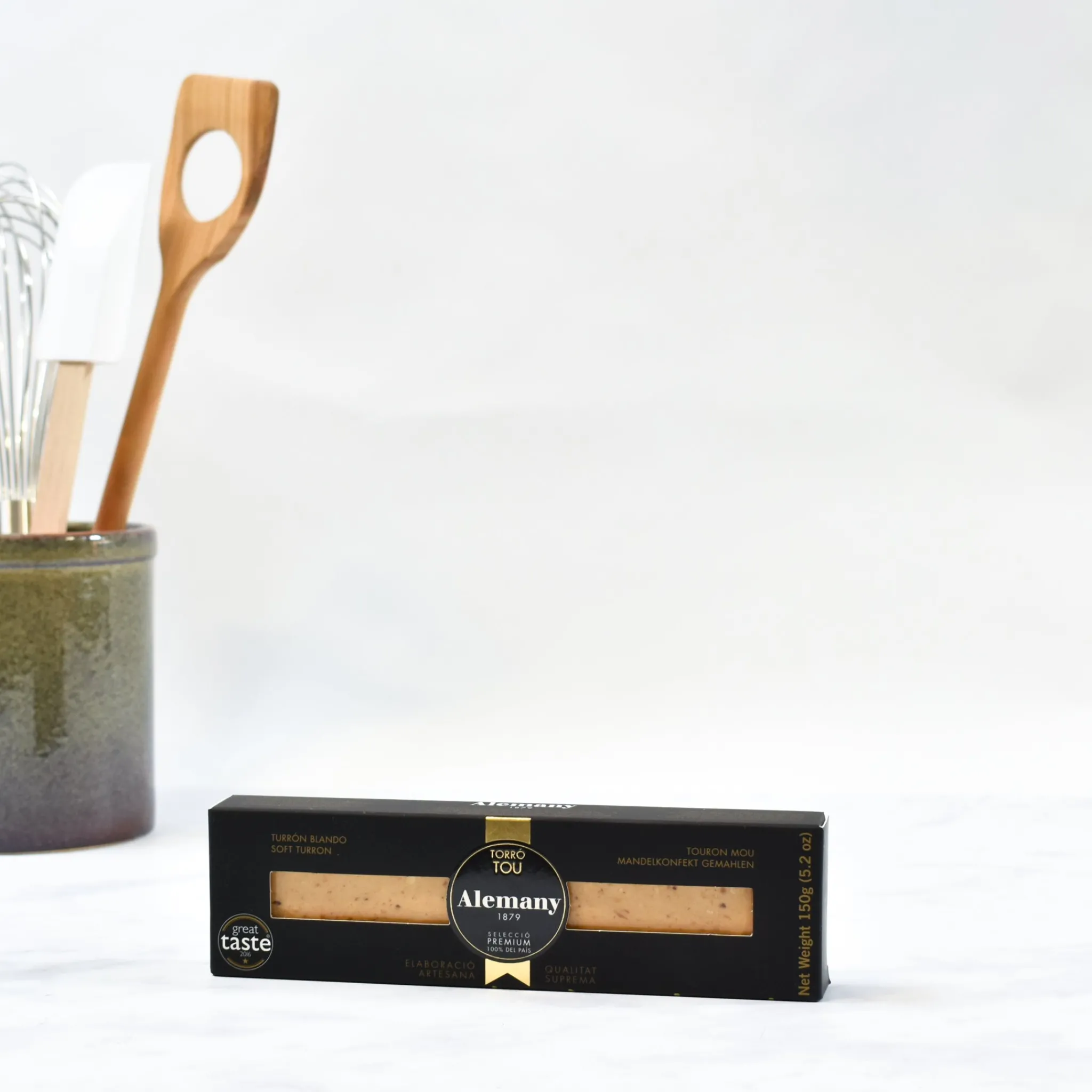 Alemany is a third-generation business located in a rural Catalan village, surrounded by hills covered with rosemary and thyme, giving their distinctive flavours to the honey used in this soft turron.