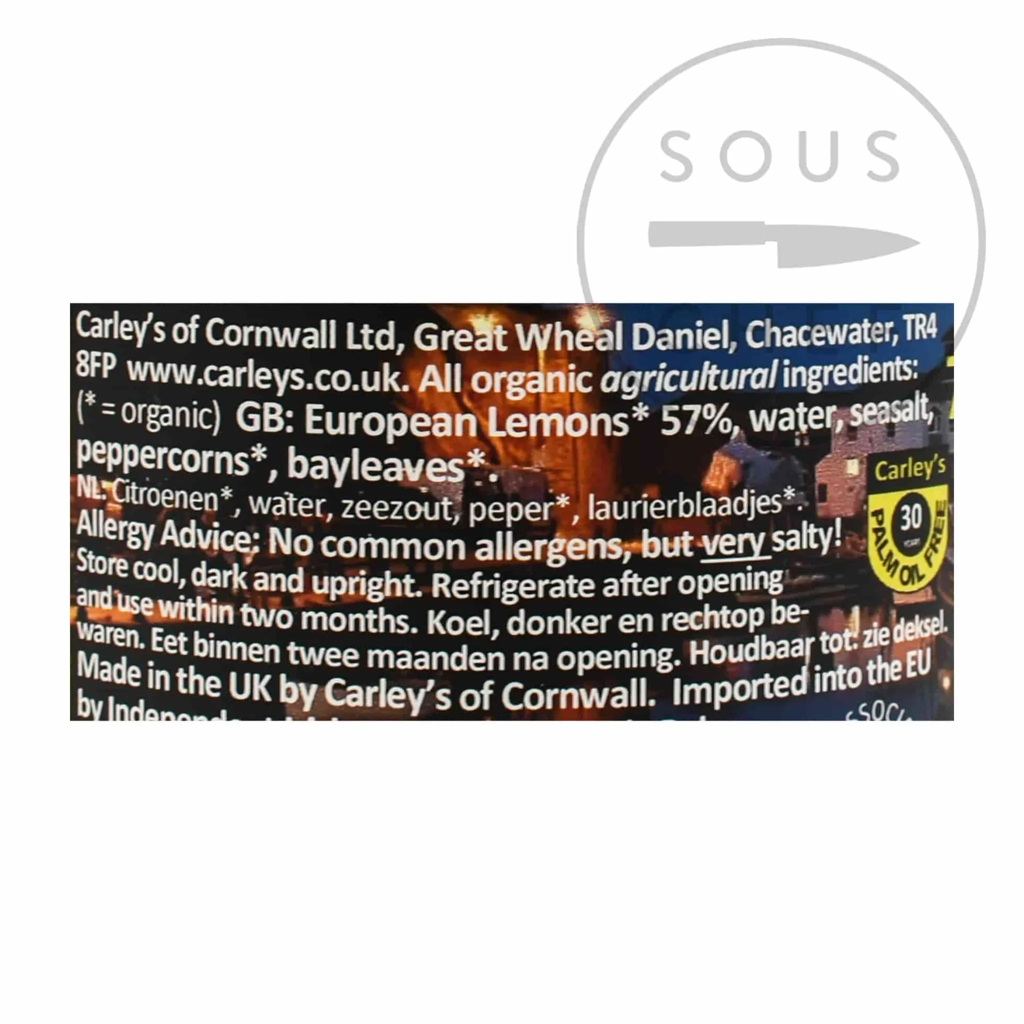 Product formulations and details may change. For the latest ingredients and allergen information always check product packaging prior to consumption. Ingredients: organic lemons (57%), water, sea salt, organic peppercorns, organic bay leaves. may contain traces of nuts, sesame, mustard and peanuts.