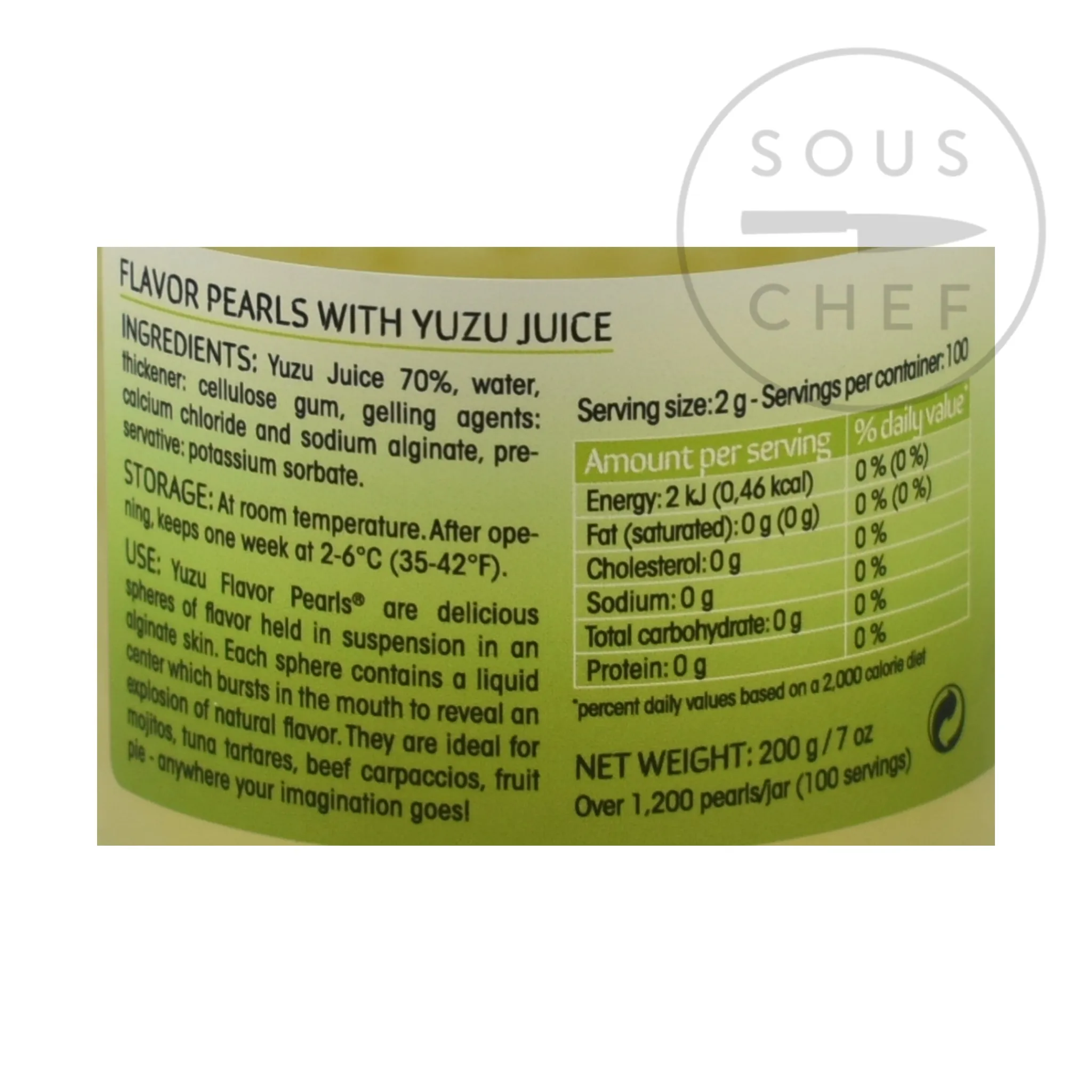 Enjoy the yuzu flavour pearls with oysters, in cocktails, or with Japanese-style fish dishes. The yuzu flavour pearls are pale lemon yellow colour, with a citrussy floral aroma from yuzu, the prized Japanese citrus fruit.
