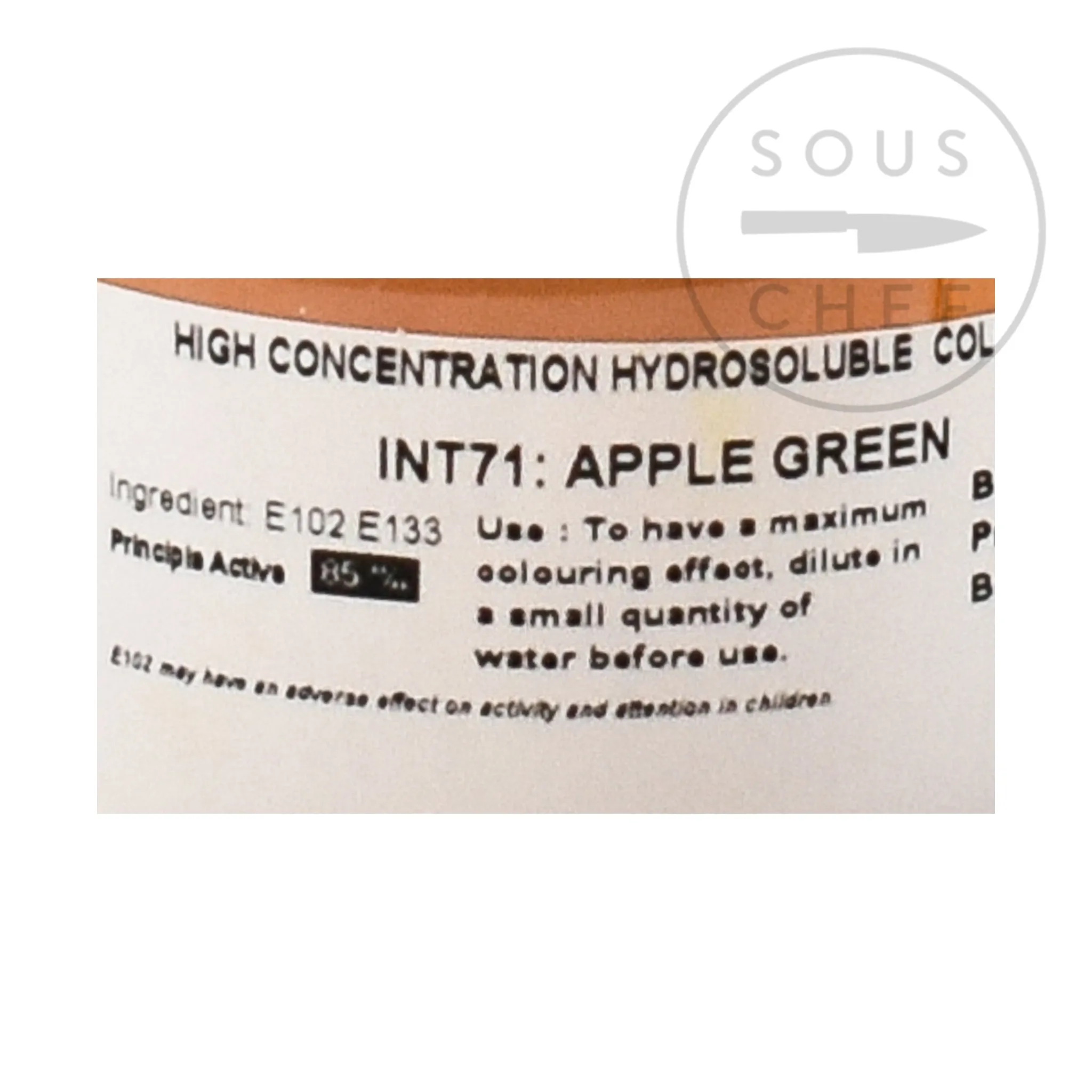 The green food colour is water soluble. For maximum effect, dilute in a small amount of water before use. Recommended use is 1tsp of colouring in 1tsp water to colour 2kg of sugar. Contains 50g, or approx 60ml, or 12 tsp – enough for 24kg sugar.