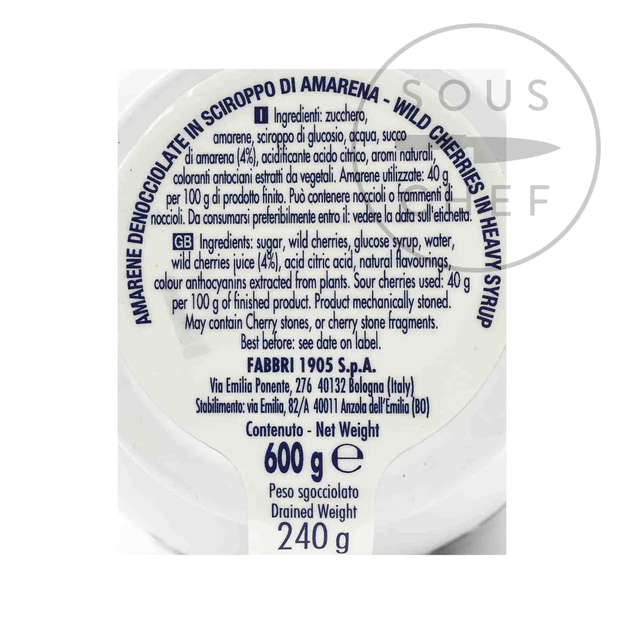Fabbri Amarena cherries in syrup are world famous demi-glacé cherries in a decorative opaline jar. The Amarena cherries are soft and juicy, with a pleasing sourness that balances the sweet syrup.