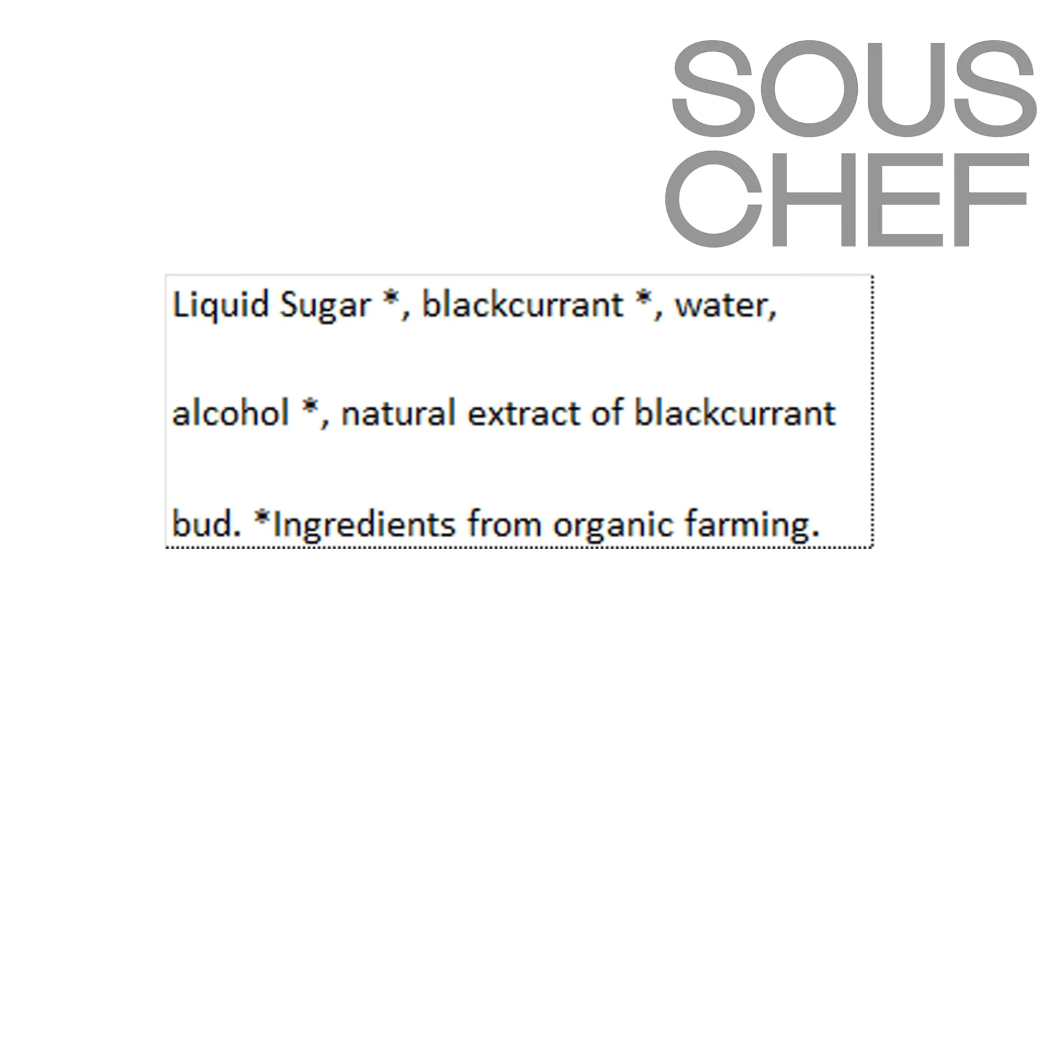 Product formulations and details may change. For the latest ingredients and allergen information always check product packaging prior to consumption. Ingredients: Liquid sugar *, blackcurrant *, water, alcohol *, natural extract of blackcurrant bud. * ingredients from organic farming