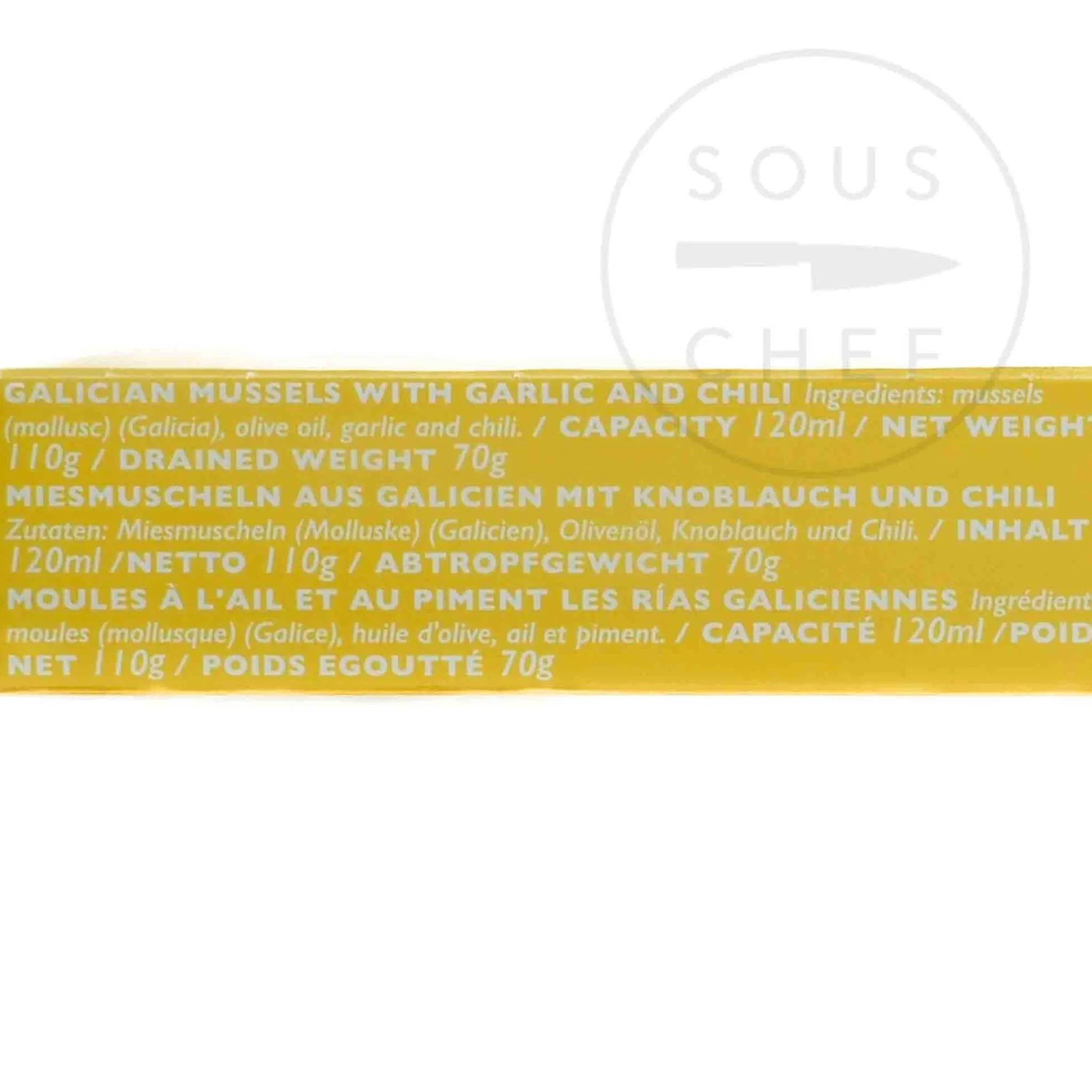 Product formulations and details may change. For the latest ingredients and allergen information always check product packaging prior to consumption. Ingredients: Mussels (mollusc), olive oil, salt, garlic and chilli. May contain traces of fish and crustaceans.