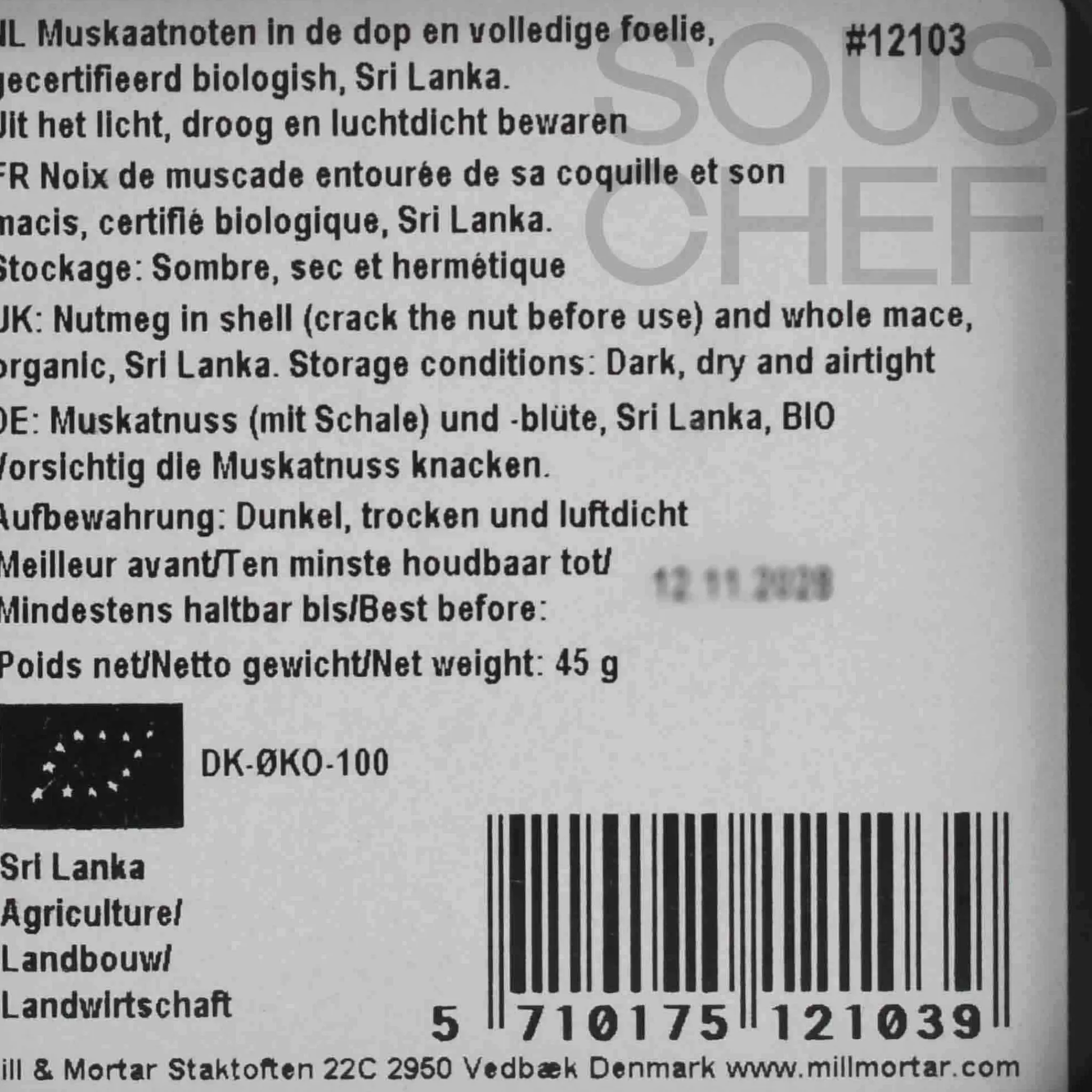 Product formulations and details may change. For the latest ingredients and allergen information always check product packaging prior to consumption. Ingredients: Whole nutmeg and mace