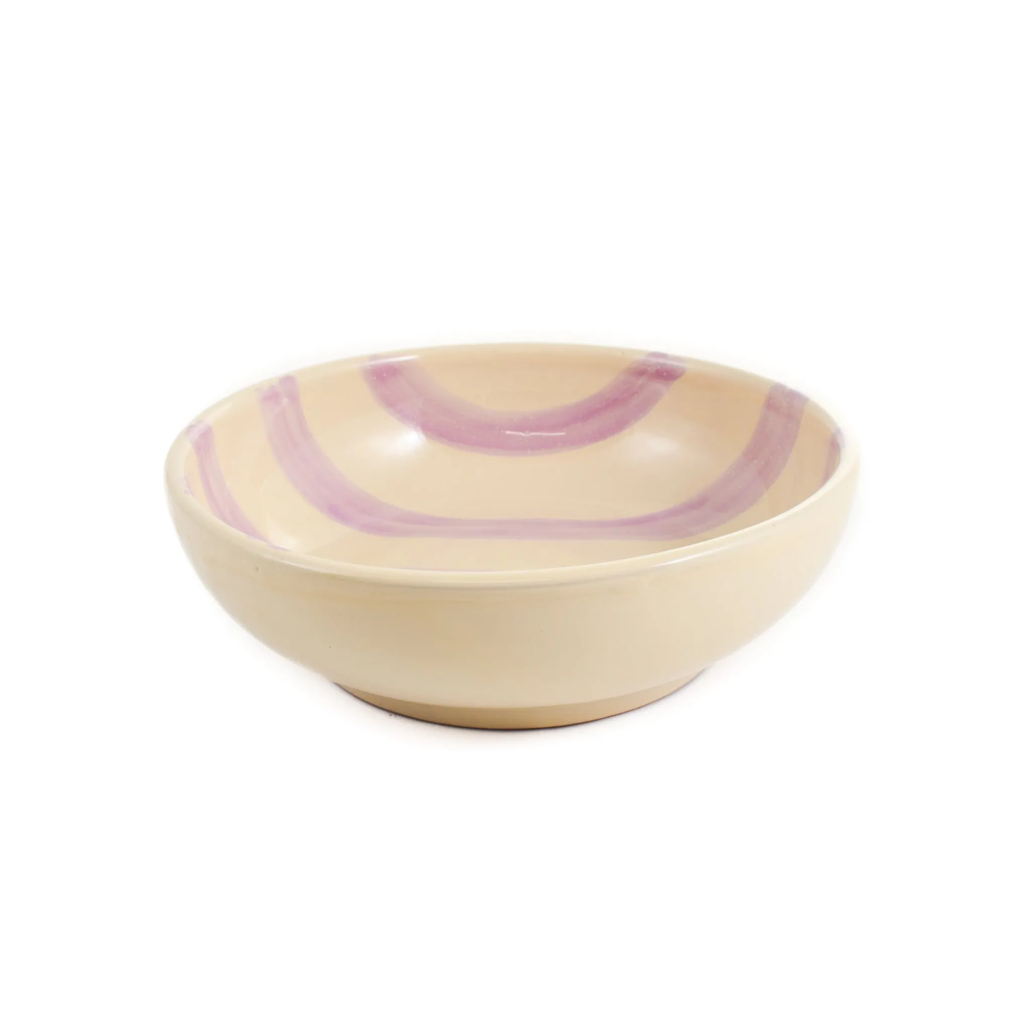 This ceramic bowl features hand-painted stripes in pale lilac. Handmade in Italy, it’s a stylish addition to your crockery collection.