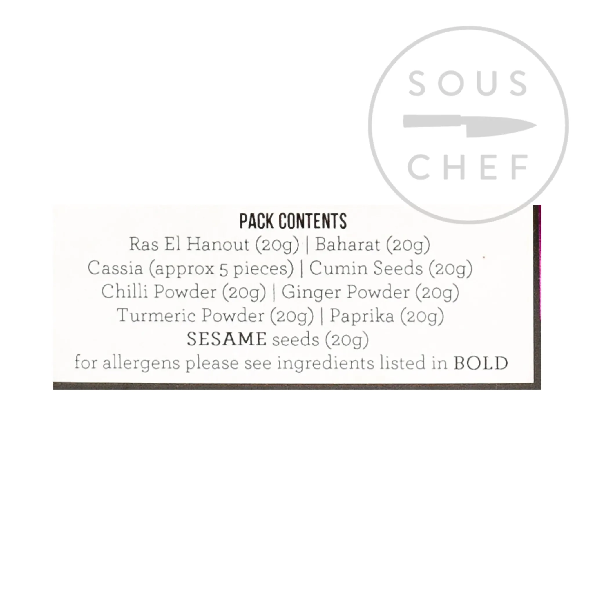 - Ras el Hanout 20g– warm, aromatic blend of cumin, coriander, cinnamon, ginger, black pepper, turmeric and cardamom