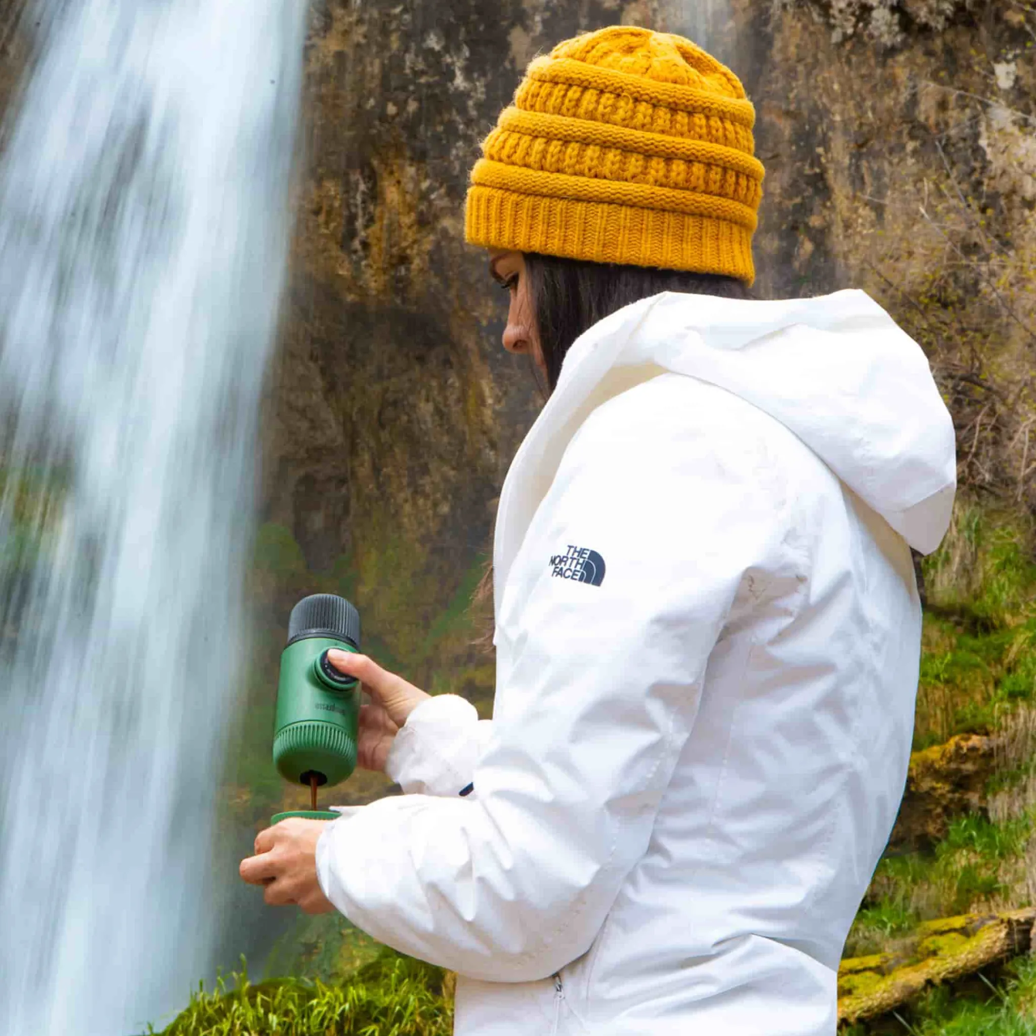 Enjoy a rich, creamy espresso with the Wacaco Nanopresso in moss green. This handheld espresso maker is built around a patented pumping system. With the help of your hands, it can reach 18 bars of pressure for unparalleled coffee extraction.