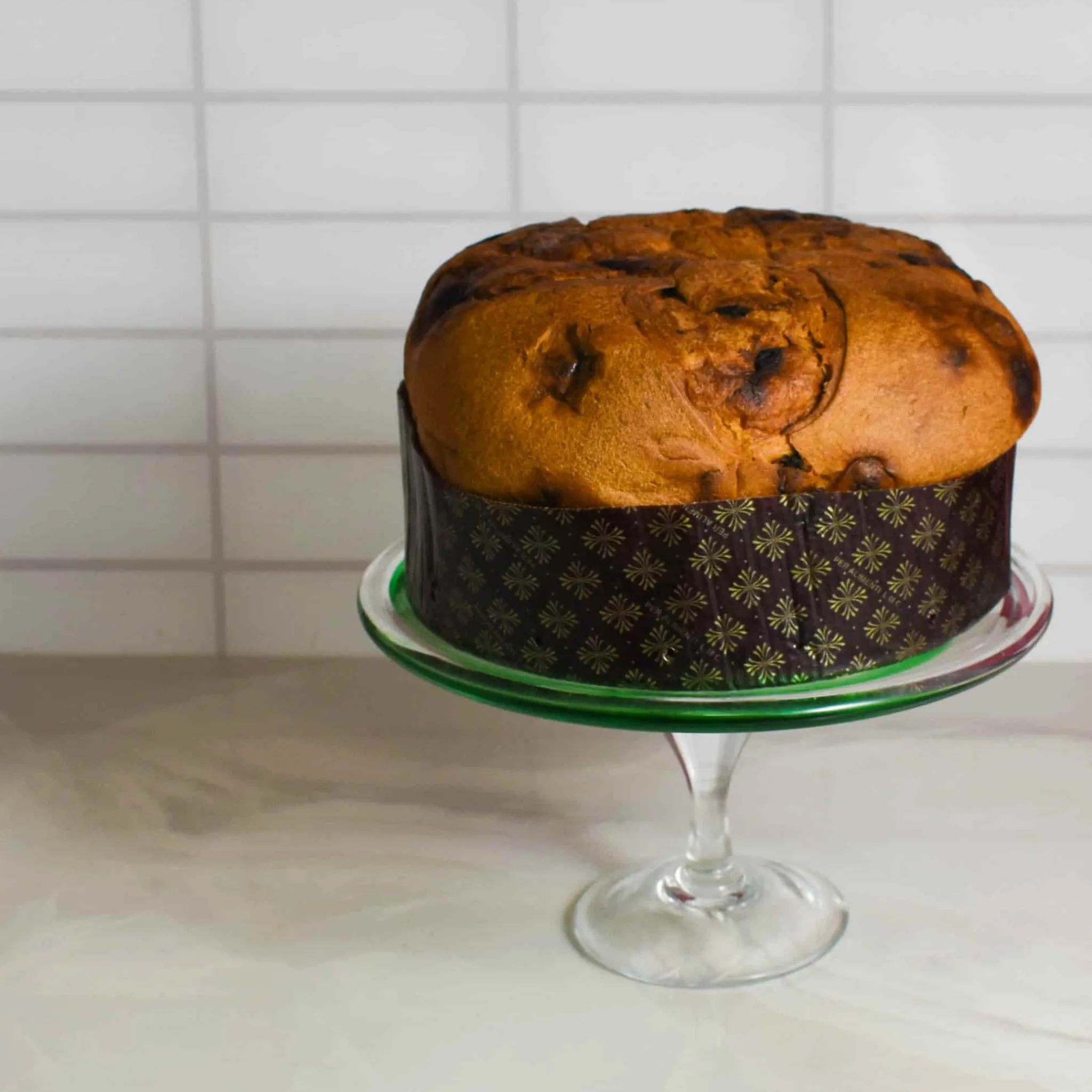 This Murano glass green cake stand is a sleek and stylish way to serve your favourite cakes and sweet treats. Made in Italy, the elegant cake stand has a sturdy glass base and a swirl pattern in an eye-catching shade of forest green. Use it to serve freshly baked croissants, salted caramel brownies or a show-stopping homemade birthday cake.
