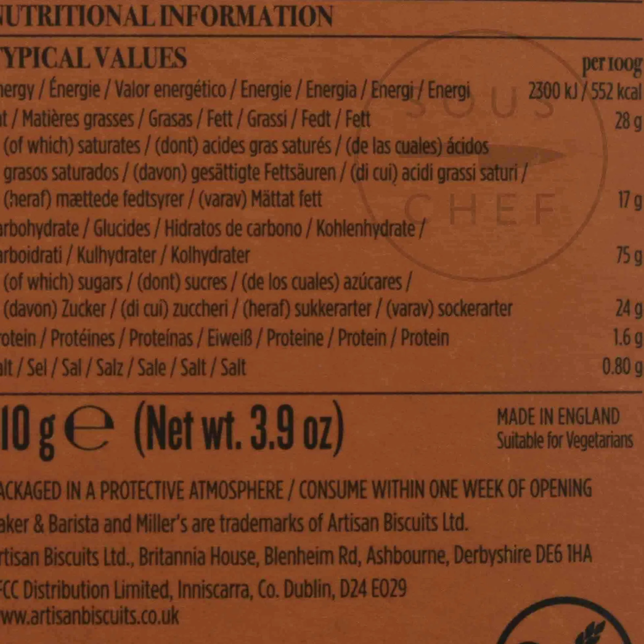Product formulations and details may change. For the latest ingredients and allergen information always check product packaging prior to consumption. Ingredients: Butter (milk (33%), salt), tapioca starch, sugar, rice starch, potato starch, maize starch, disodium diphosphate, sodium hydrogen carbonate, vanilla extract (0.2%, beta carotene, sea salt. Not suitable for nut allergy suffers.