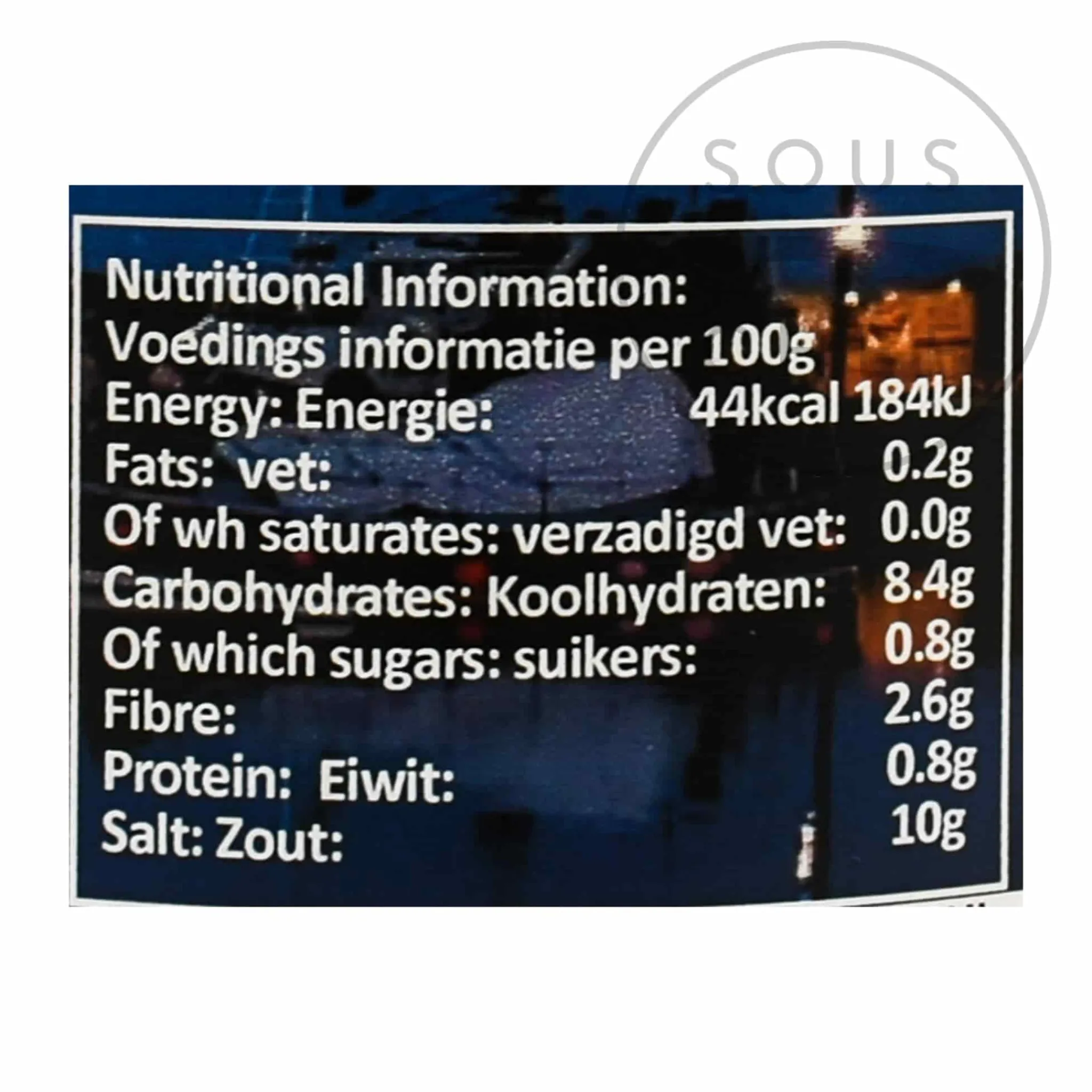 Product formulations and details may change. For the latest ingredients and allergen information always check product packaging prior to consumption. Ingredients: organic lemons (57%), water, sea salt, organic peppercorns, organic bay leaves. may contain traces of nuts, sesame, mustard and peanuts.