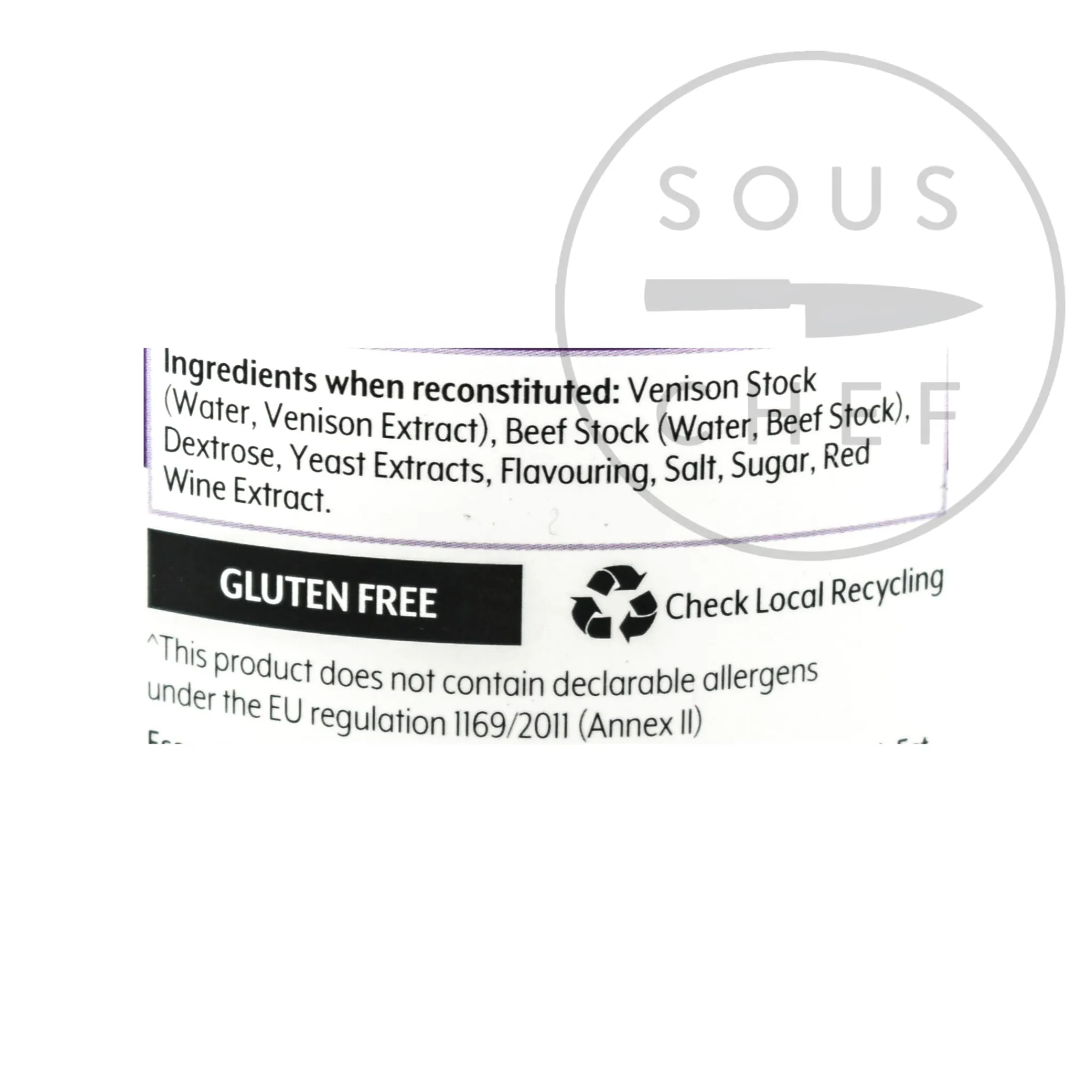 Product formulations and details may change. For the latest ingredients and allergen information always check product packaging prior to consumption. Ingredients: Venison stock (water, venison extract), beef stock (water, beef stock), dextrose, yeast extracts, flavouring, salt, sugar, red wine extract.