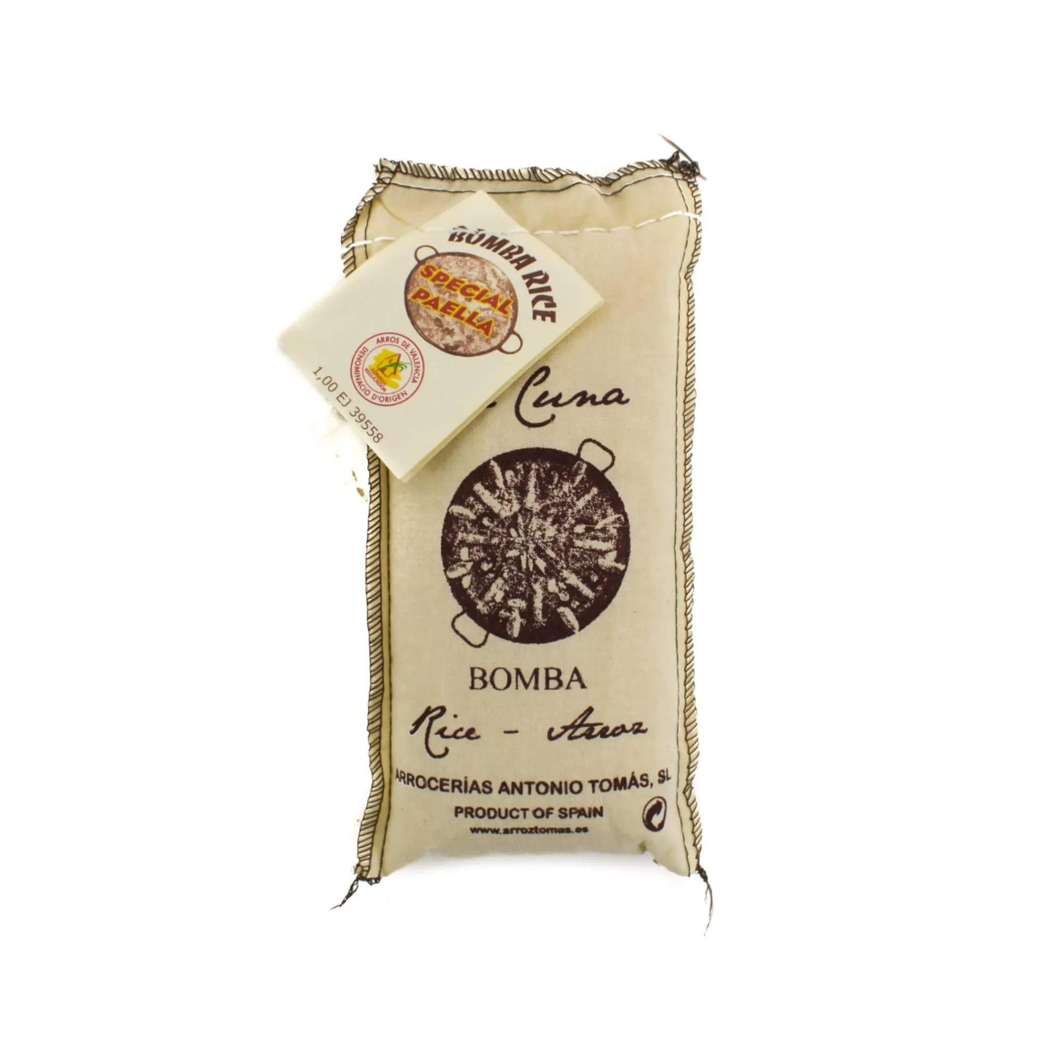 Bomba rice is a short-grained variety of rice, grown in eastern Spain. It is one of the most sought-after rice varieties for paella because of its superior quality and absorption properties. The rice grains are highly absorbent, taking in up to three times its dry weight – which makes beautiful creamy, loose-textured risotto. Meanwhile, Bomba rice retains its shape very well during cooking and does not fall apart.