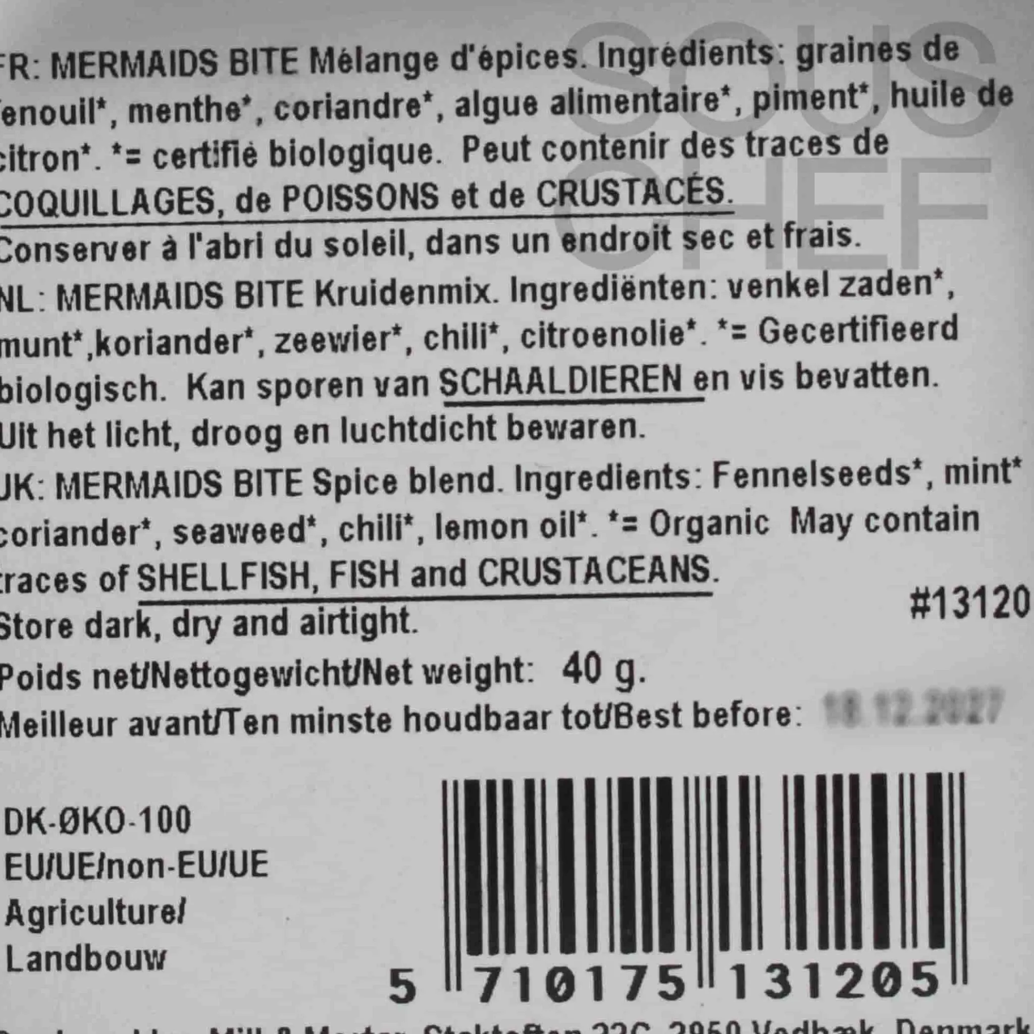 Mermaid’s Bite is a fresh, flavourful spice blend for barbecue and seafood. Expect bright, herbal notes from fennel, mint and coriander. Lemon oil delivers citrus zing, while dried seaweed adds umami and a taste of the sea.