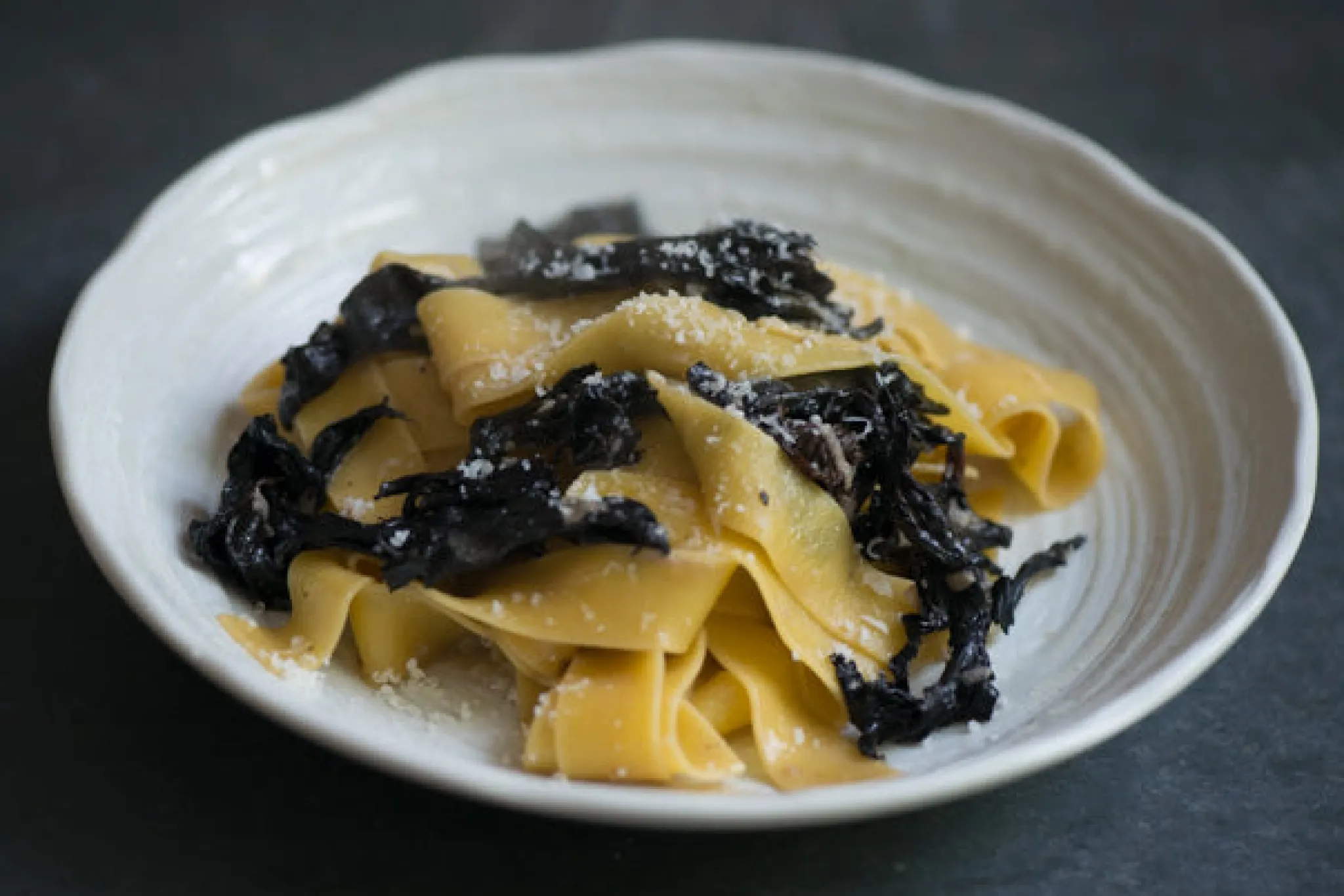 Rummo pappardelle all ‘uovo pasta, egg pappardelle, is a beautiful dried quick-cook egg pasta. The thick ribbons really come into their own when served with a simple mushroom sauce. Rummo egg pappardelle pasta cooks in 5 minutes. The pasta is divided into six equally-sized nests, so it is easy to portion.